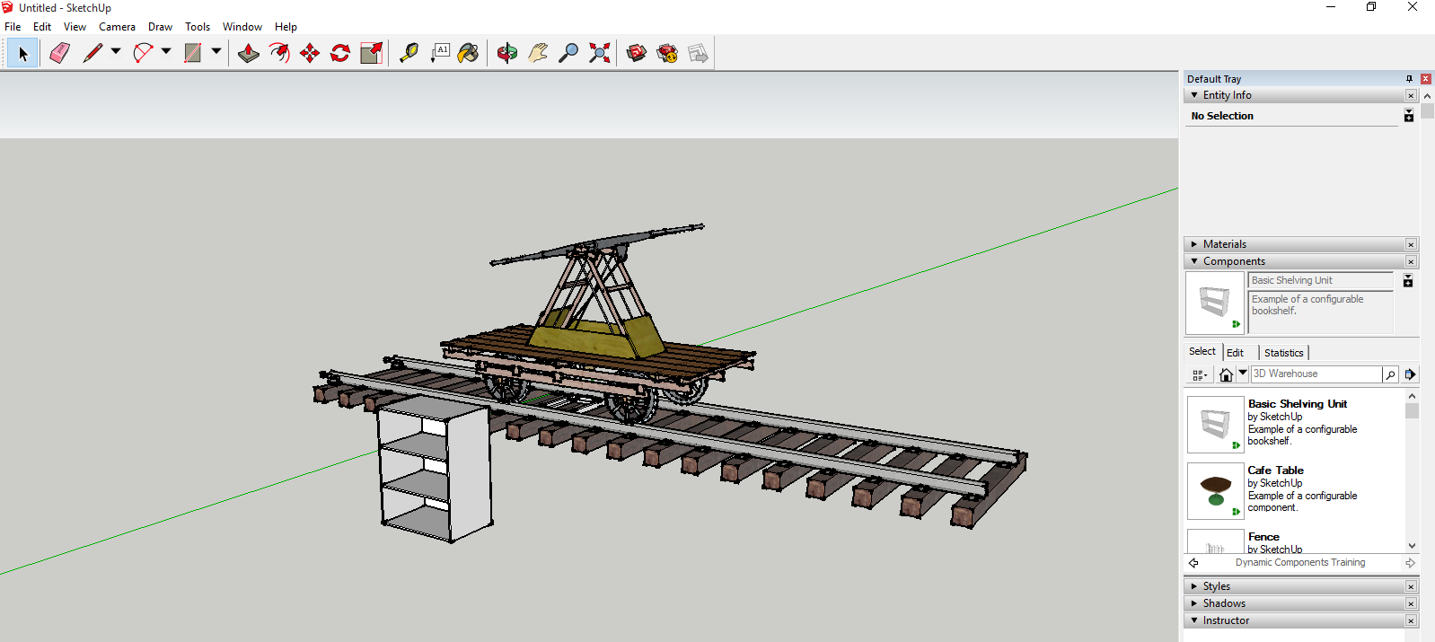 SketchUp’s one ace in the hole is its photo-match tool. This is a profoundly useful tool for model railroaders. Starting from a few photographs and a couple of known dimensions, SketchUp is able to reverse the perspective and compute a model of the pictured item. It works very well for buildings where we frequently have an idea of the footprint from a fire insurance plan, but no elevation drawings.
