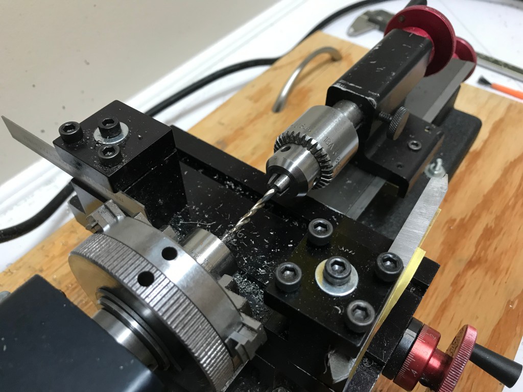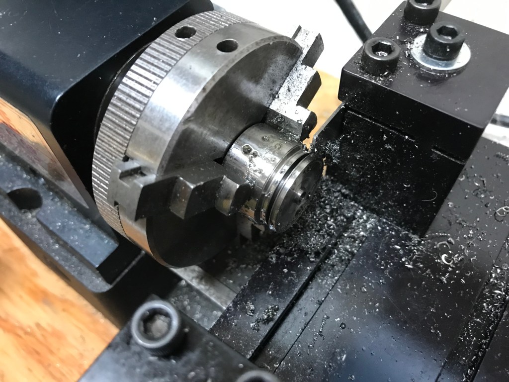 It has taken a week longer than I wanted to turn the drivers for 622. These are made from 303 stainless steel, which I’m fairly convinced is almost the limit for my little Sherline lathe. Certainly, all tools need to be sharp, and shallow cuts are de rigeur. Along the way, I have seen a steady improvement in the quality of the output. From the first sample, which was frankly not very good, to the last ones, which are quite acceptable.