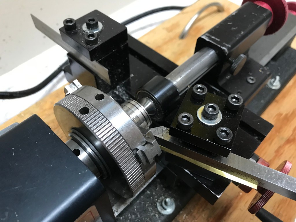 Along the way, I learned that I can get two wheels out of a one-inch piece of stock, and that anything longer is not a good idea because you want to part this hard material close to the chuck. I also figured out the best sequence of steps to balance speed with accuracy. Here, then, are the instructions for when I need to cut more drivers: