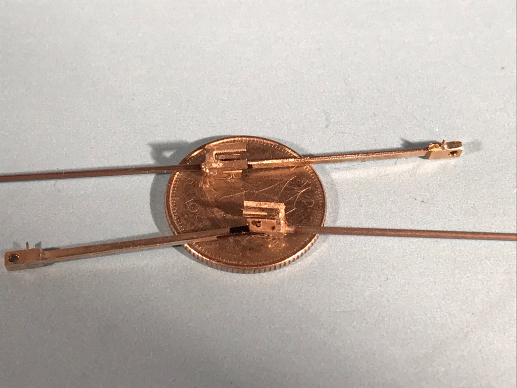 The main rods are held in place with a sliver of .020” wire, soldered from the back. Again, the train spirits were pulling for me, and I somehow managed to solder the pins in without solidifying the whole assembly. Thank goodness only two are required!