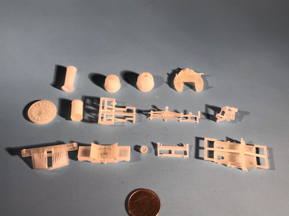 The “big” package from Shapeways arrived this week and out rolled an array of details that should save a lot of modelling time for this engine and her sisters. They are all printed with Shapeways’s “Smoothest Fine Detail Plastic” and I have to admit I’m impressed. Except in a couple of places, like the equalizing levers where there was a shallow angle, there are no discernable layers.