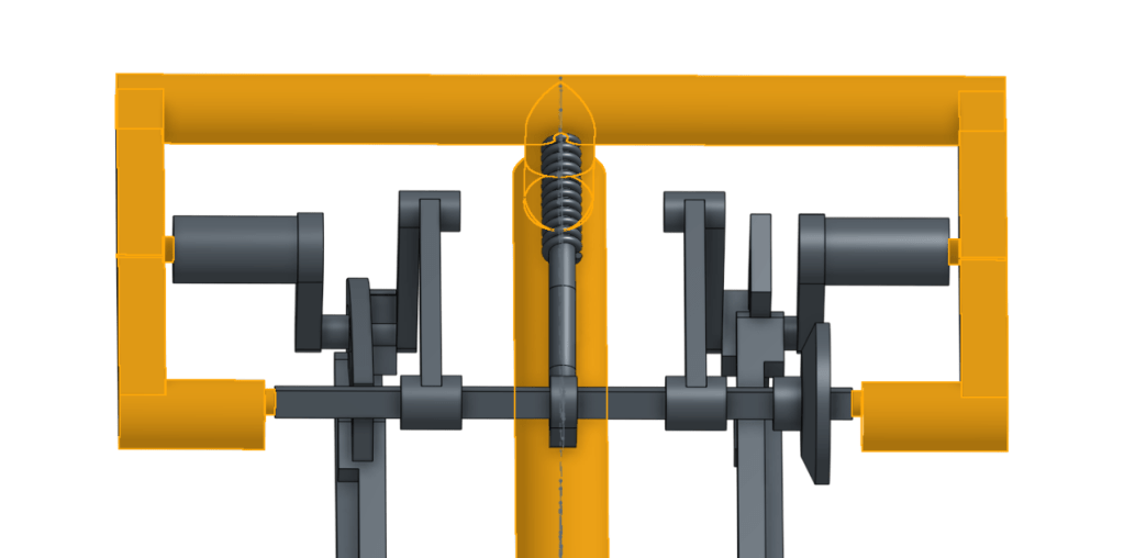 The valve gear on its (orange) sprue. Note the short cylinders attaching the part to the sprue.