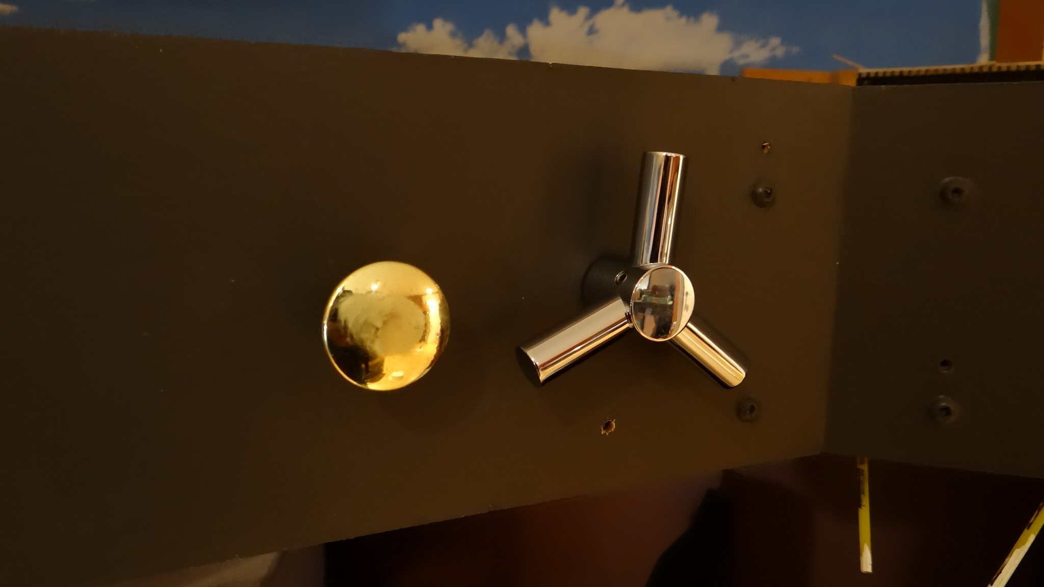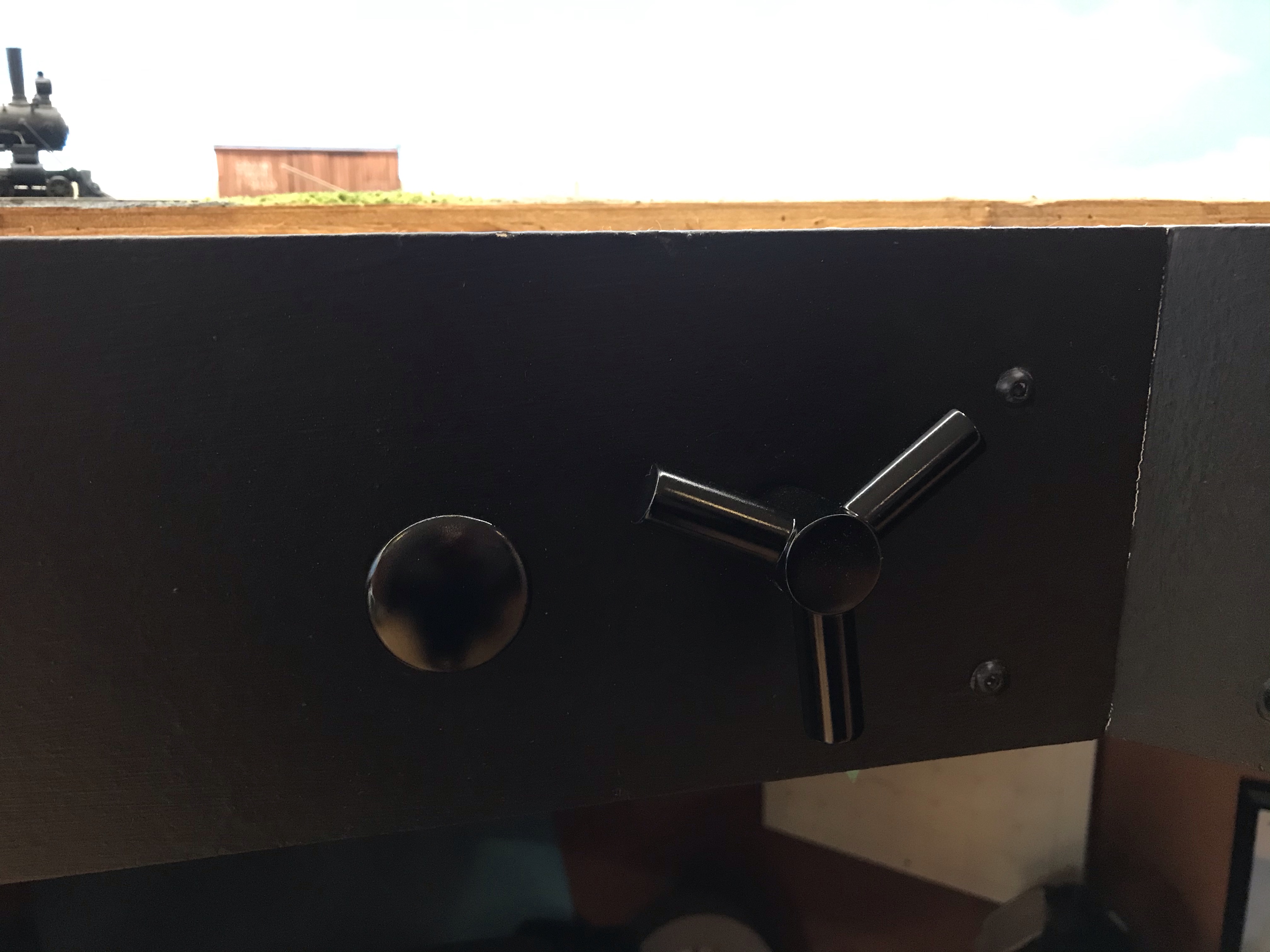 The controls for the turntable were one of the latter. With their mismatched plumbing finish, they have been lurking in the corner of the room for almost as long as the real one lasted. It has always been my intention that they and indeed all controls on the fascia should be black to reinforce the design aesthetic of the layout. How I have lived all these years with this unfinished but trivial task, I don’t know.