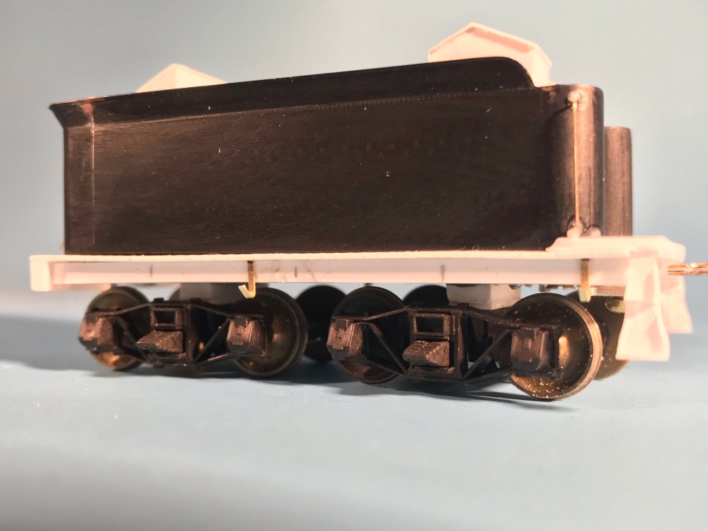 As I mentioned, the tender side sills were looking a little barren. So, I scurried over to the reference material to see what should be there. Interestingly, this is a point where 622 differs from its stable-mates. The details were straightforward to put together with strips of brass and some Grandt Line nut-bolt-washer castings.
