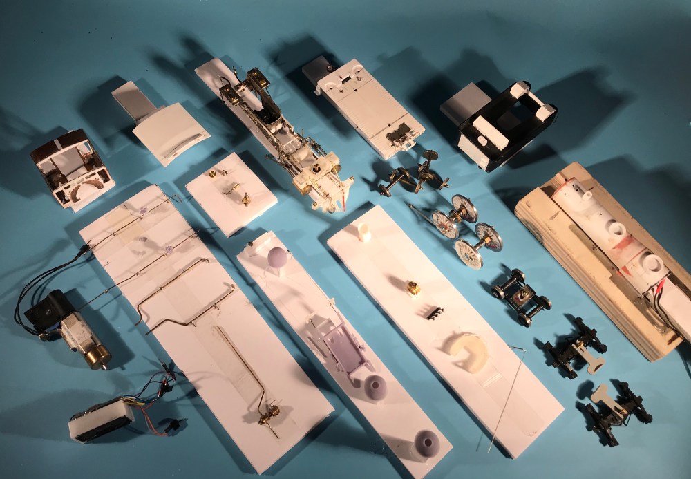 When you lay them all out, ready for painting, 622 incorporates quite a few subassemblies! Thirty-seven, in this photo, but I’ve left out the cab windows, so that’s another seven. Forty-four subassemblies in total.