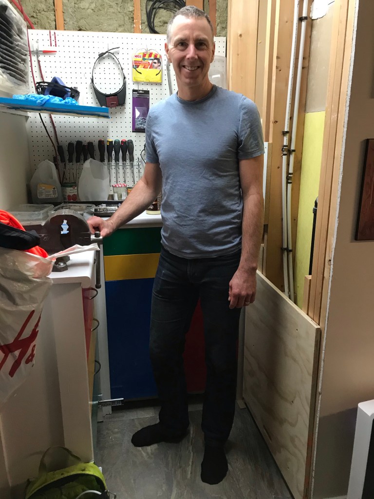Our family of four lives in a modest 1800 square foot (170 m2) side split house. Every room does double duty. The rest of the family calls the train room “the rec room.” The heavy shop is tucked into an alcove of the laundry room, which is also our recycling centre and pantry and provides access to the second bathroom. The heavy shop itself doubles as 3D printing studio and paint shop.