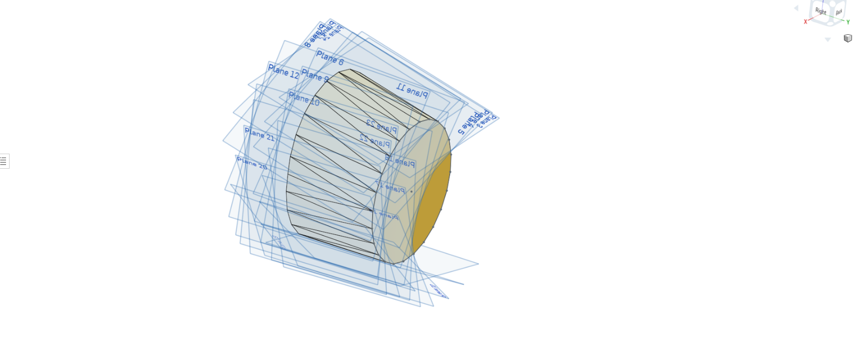 Now I had a properly faceted solid, and I felt I should have been able to make a sheet metal model out of it. However, even that did not work. OnShape wouldn’t let me bend all the joints, and some of the triangles lost their points. I monkeyed with all the parameters to no avail, and we adjourned until the next day.