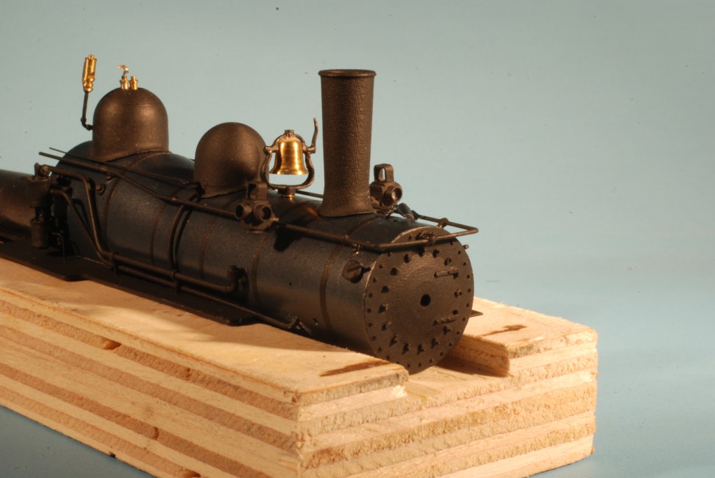 I left most of the details off the boiler until after it was painted. This enabled me to paint the boiler blue to represent planished iron, rather than black. It’s possible that by 1905, 622 was painted black, but I confess I like the blue look. Installing the details was a delicate operation because most can only be glued from the outside due to the boiler weight.