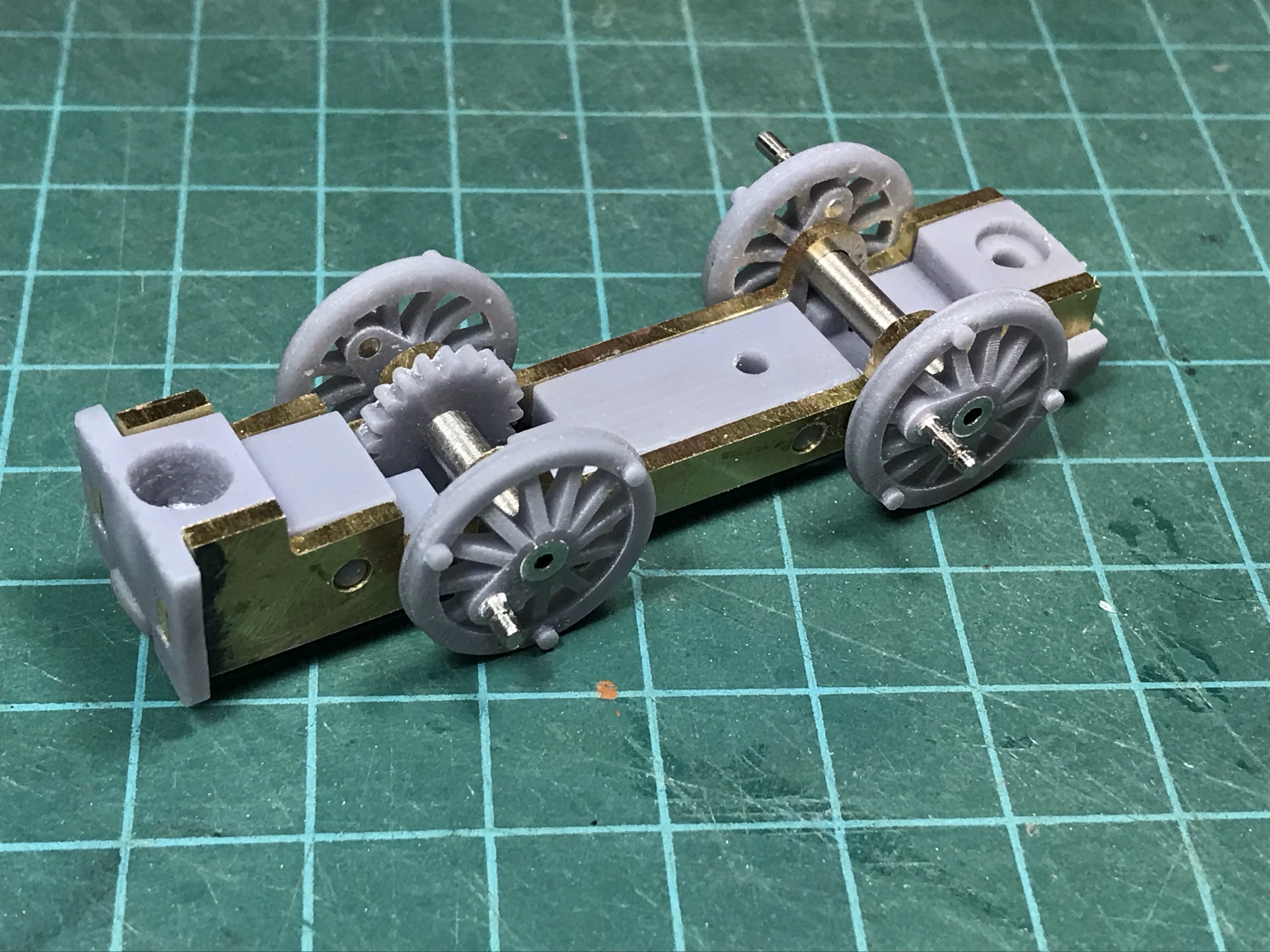 The design for the frames includes three printed spacer blocks, which cunningly interlock with the keeper plate to hold the wheels in place. The original three screws that hold Percy together hold the frame together too.
