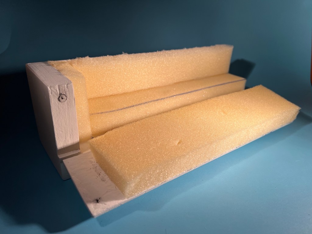 My models tend to be delicate, and I don’t like the idea of trying to slide them into a foam U, no matter how soft the foam is. So, I hinged one side of the cradle and latched it with a magnet. The model sits in the remaining L, and then with the last side folded up, it is snug and secure.