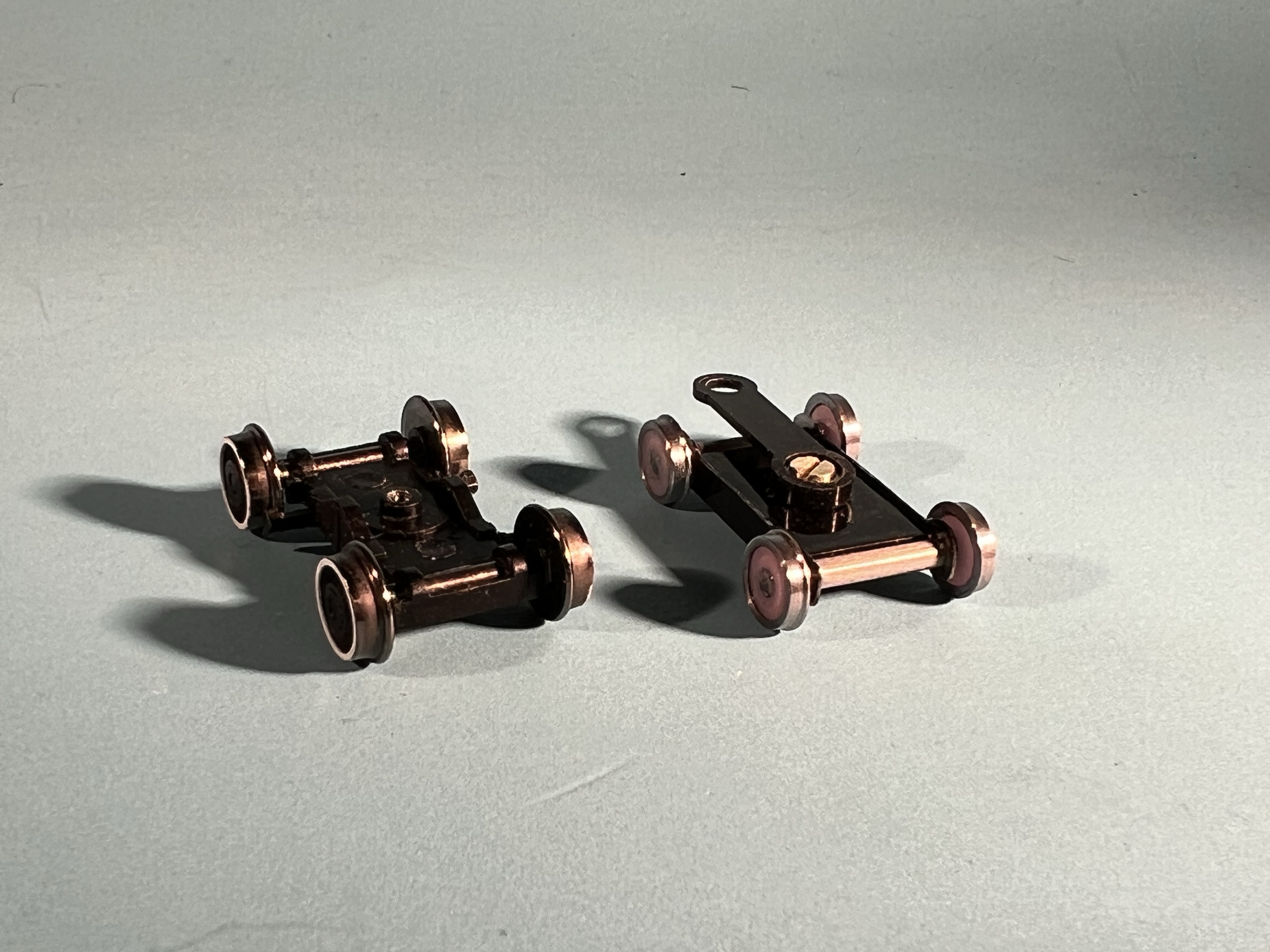 I made the replacement truck from a solid lump of brass with .020″ nickel silver frames soldered on the sides. As it happens, the frames could probably be heavier as there is a lot of play between the wheels and the frames. We’ll see how it fares once it’s on the line.