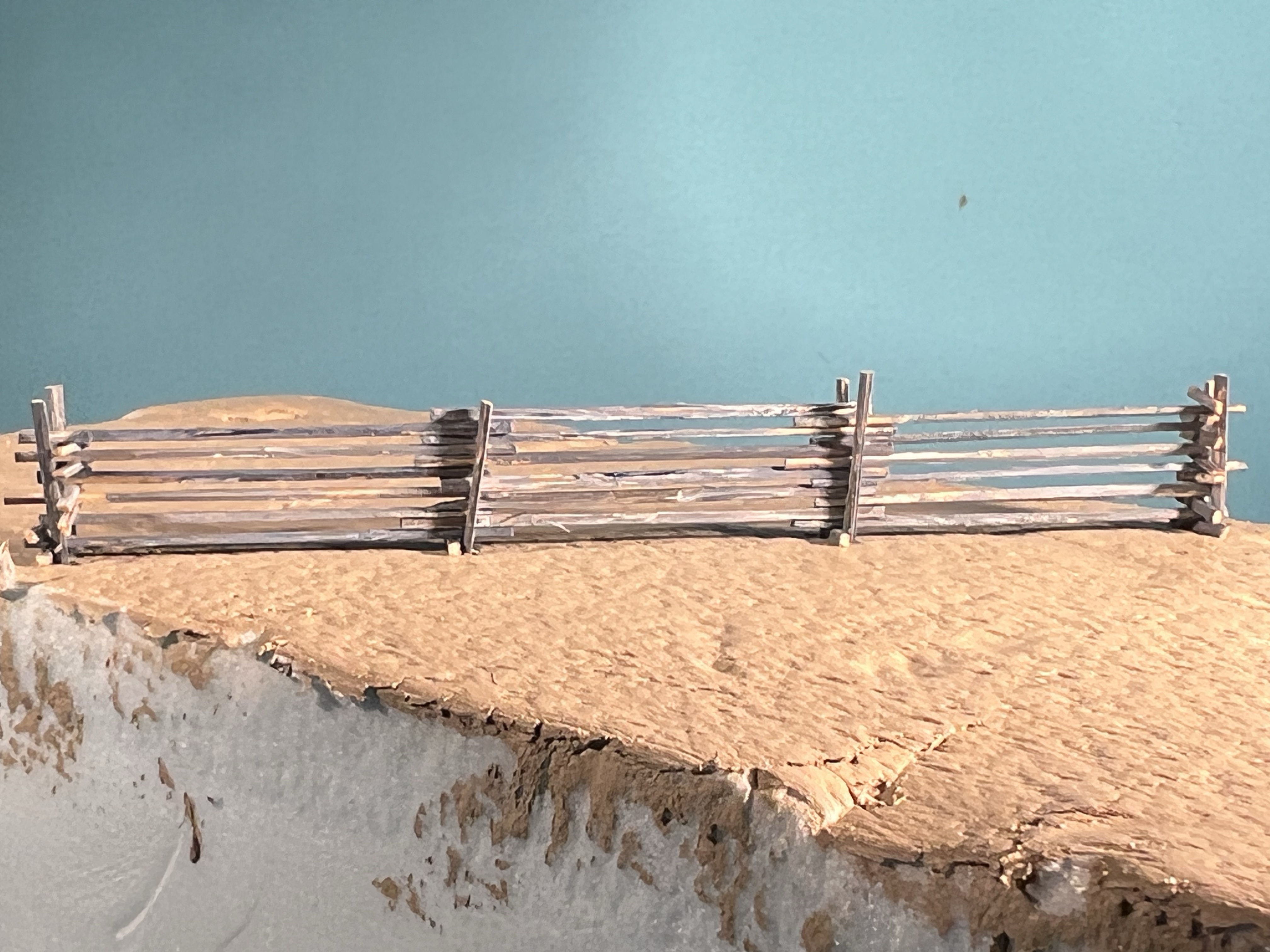 Before jumping in and trying to build the fence, I ran a test. I learned that the posts need to be placed reasonably accurately, and that it is best to make them over-length and cut them once in place. I also learned that split rail fences consume an alarming number of pieces of bamboo. The bamboo pieces, which are finished with acrylics, really look the part, though, and I’m ready to commit to the model.