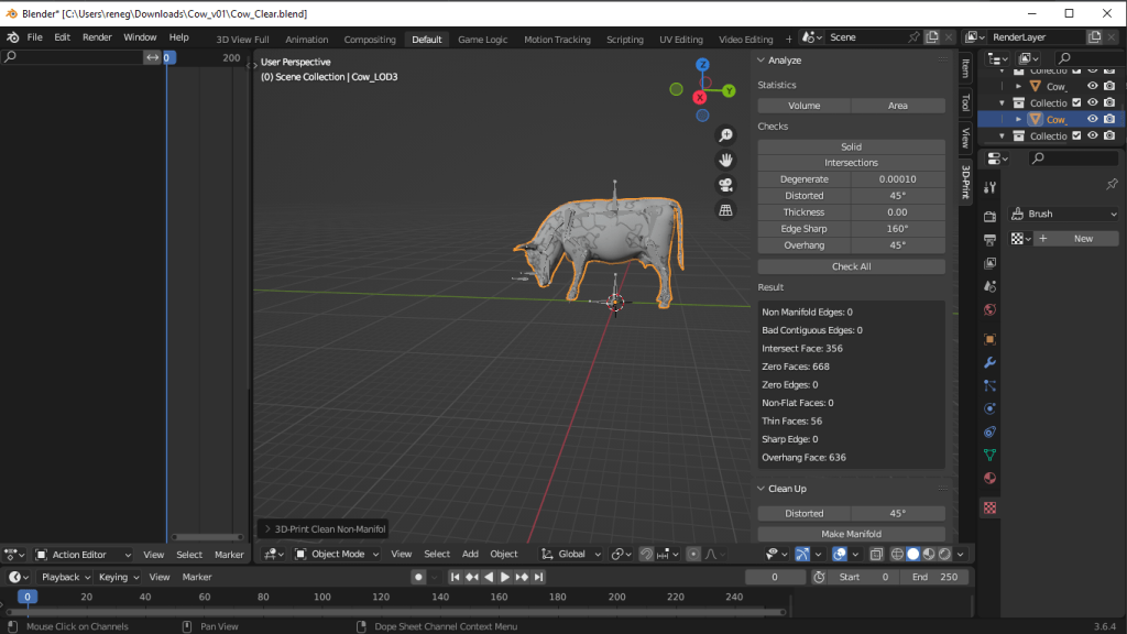 To make a long story short, I decided to apply my money to an inexpensive rigged 3D model of a cow, instead. Using Blender, and an hour or so of puzzling and watching YouTube, I can set up the poses I want and then – theoretically – print as many cattle as I like.