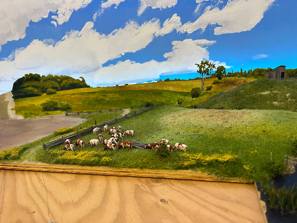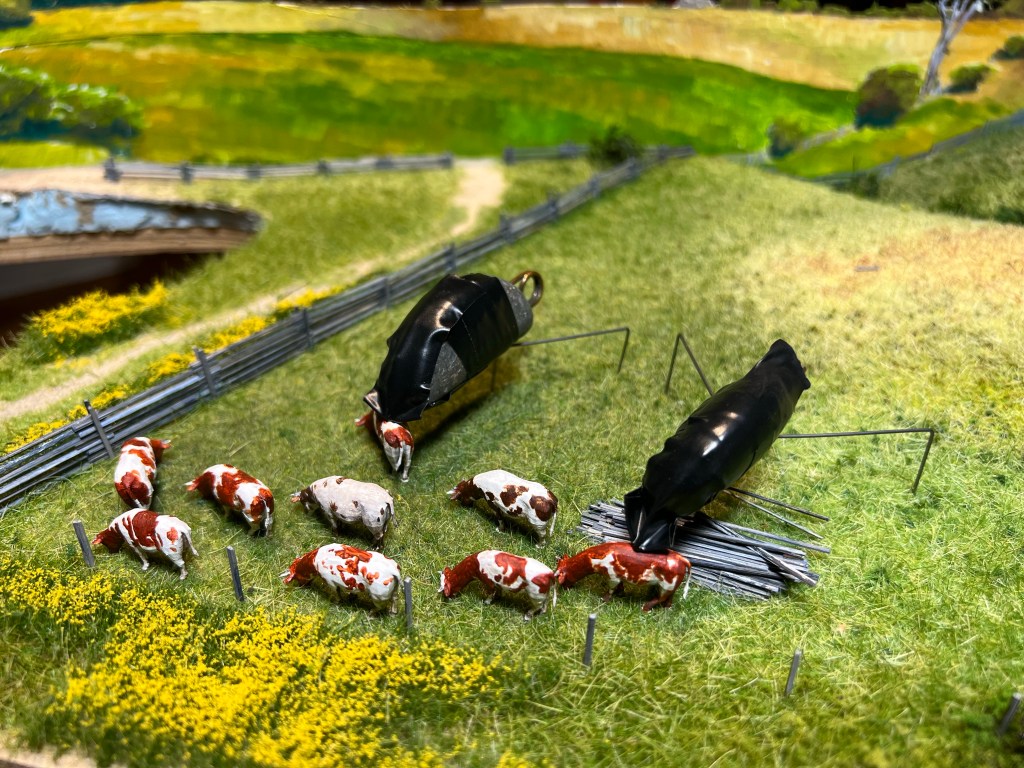 I didn’t quite finish them ahead of the visit from the North Shore model railroaders on Wednesday evening. However now that the herd have been installed in the field, I’m delighted with the way they turned out.