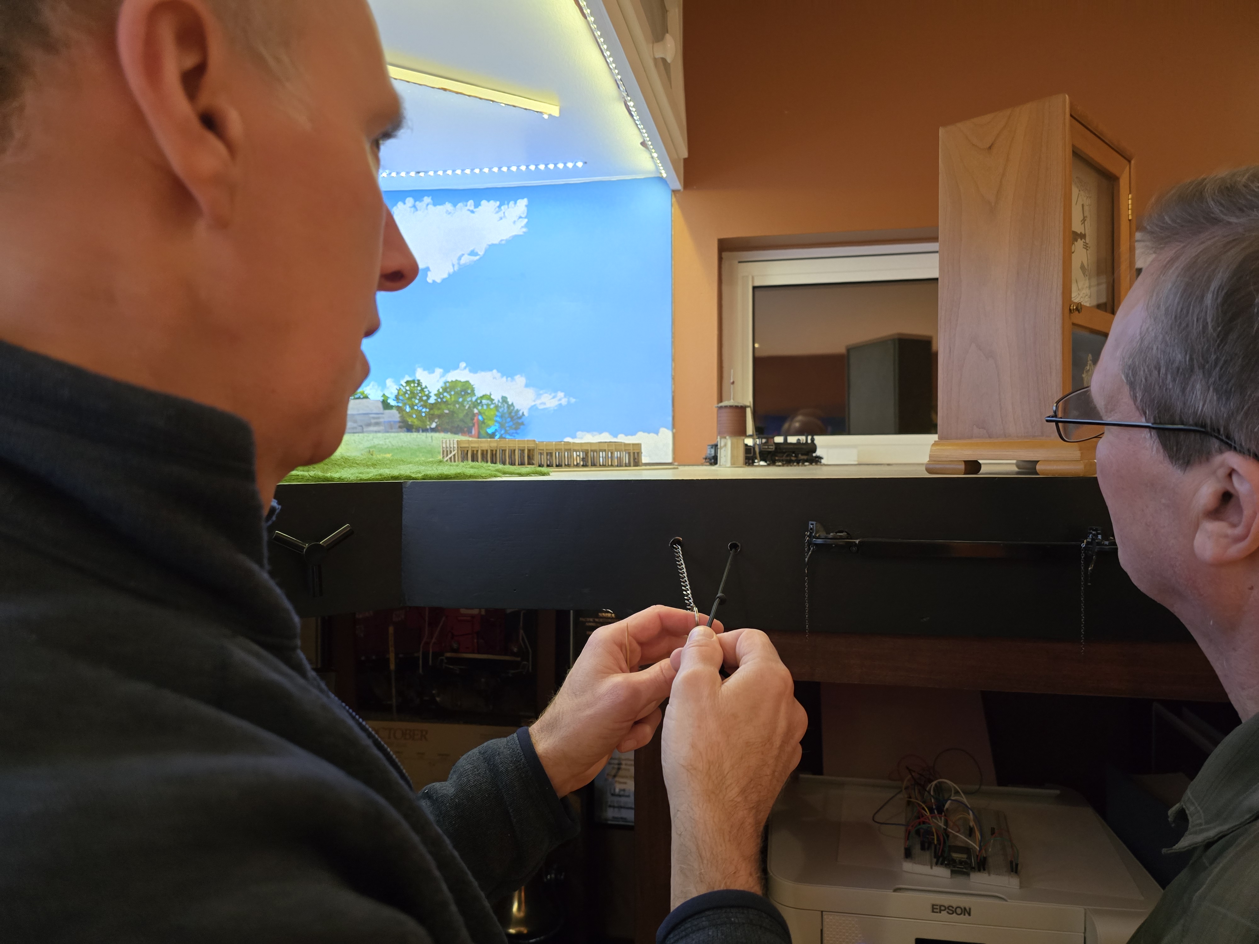 Because we’re looking at trains, I renamed it Oktobahnfest. There were home-made pretzels and Bavarian-style lager to support the theme, and eight members of the group came to see the layout. They all seemed to enjoy the evening of chatter and 1120 ran down to the junction and back, derailing less often than the last time I showed the layout, so we’ll call that a win. The new water tower was the star of the show, and folks are finally starting to understand that it’s 1905 and there are no buttons to push, but there are levers to lift and chains to pull.