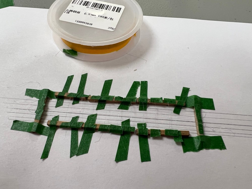 Then Rob Kirkham showed up at our local modelling night with a spool of stupidly fine stainless steel wire (available on Alibaba or Ebay). At .03 mm, it is finer than typical human hair, and a whole lot stronger. Despite the stuff being 50% overscale, it is almost invisible and so I gave it a whirl.