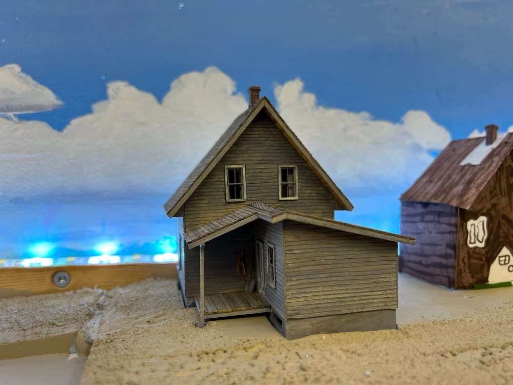I really want more stuff on the porch of the grey house to tell the viewer something about the occupants. Given that this is a background model, I don’t feel I should model individual boots or make the detail stand out too much. What I really want here is the texture of detail, rather than the actual artifacts. Perhaps some of Travers’s ideas can be put to use here too.