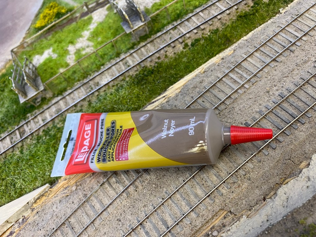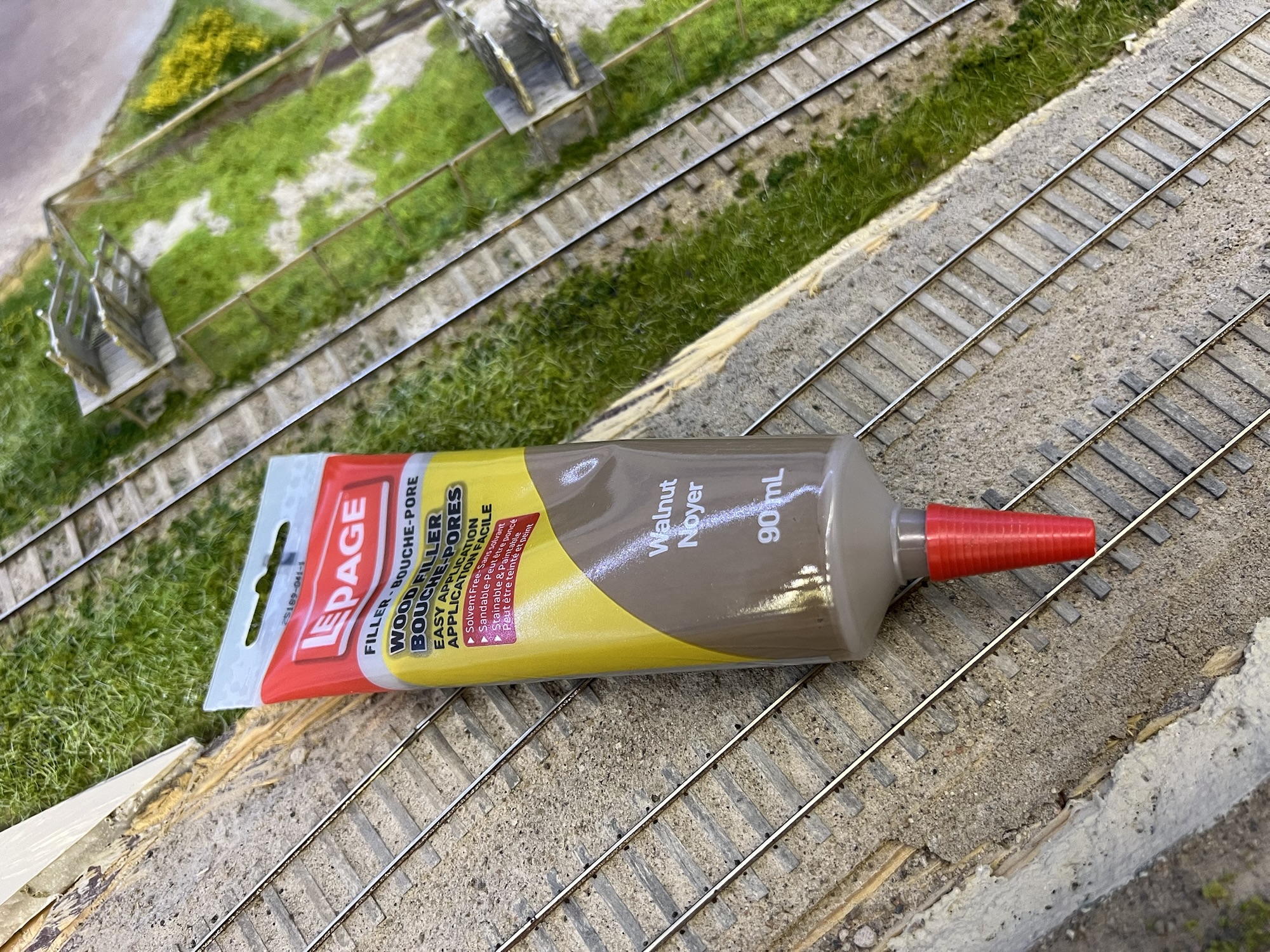 The big gaps were easy to fill with some ground goop, but there are some smaller cracks that also need filling, and one in particular is mere millimetres from the cattle pens, but over two feet from the edge of the layout. Ground goop is as imprecise as a blaster, and I needed something more refined, like a lightsaber (sorry, just watched Rogue One again).