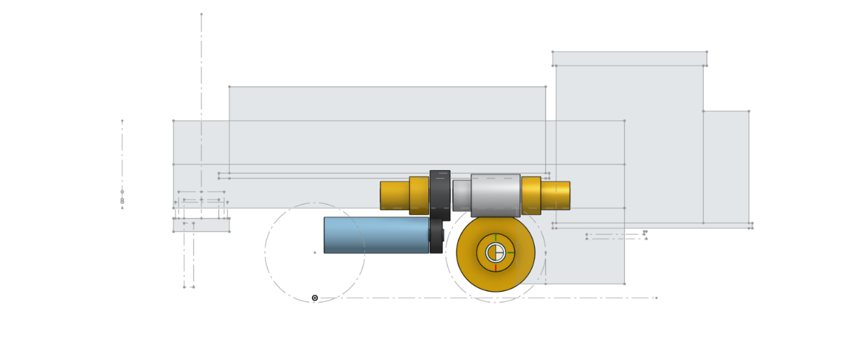 I picked up some 0.3 mod gears from Northwest Short Line a few years ago, and Doug Hicks kindly gave me a little bag of worms and worm gears. So this week, I designed a couple of options for the drive train. The motor shaft is very short, so both my designs transfer rotation via spur gears to a second shaft that carries the worm. The first design is long, and the second is more compact. I’m favouring the second.