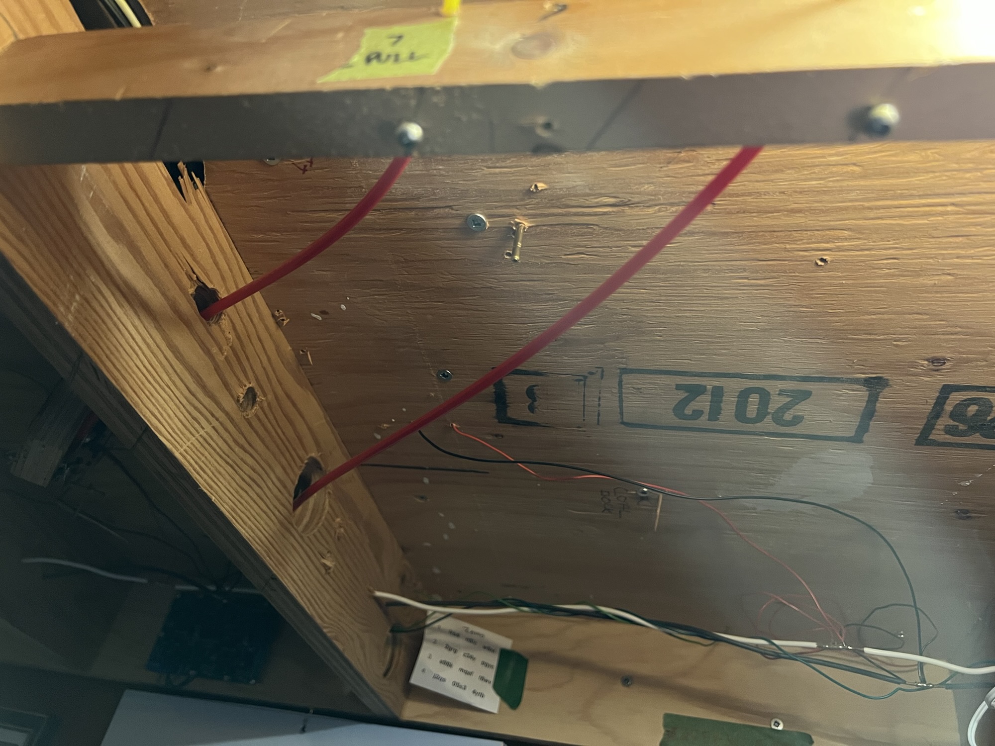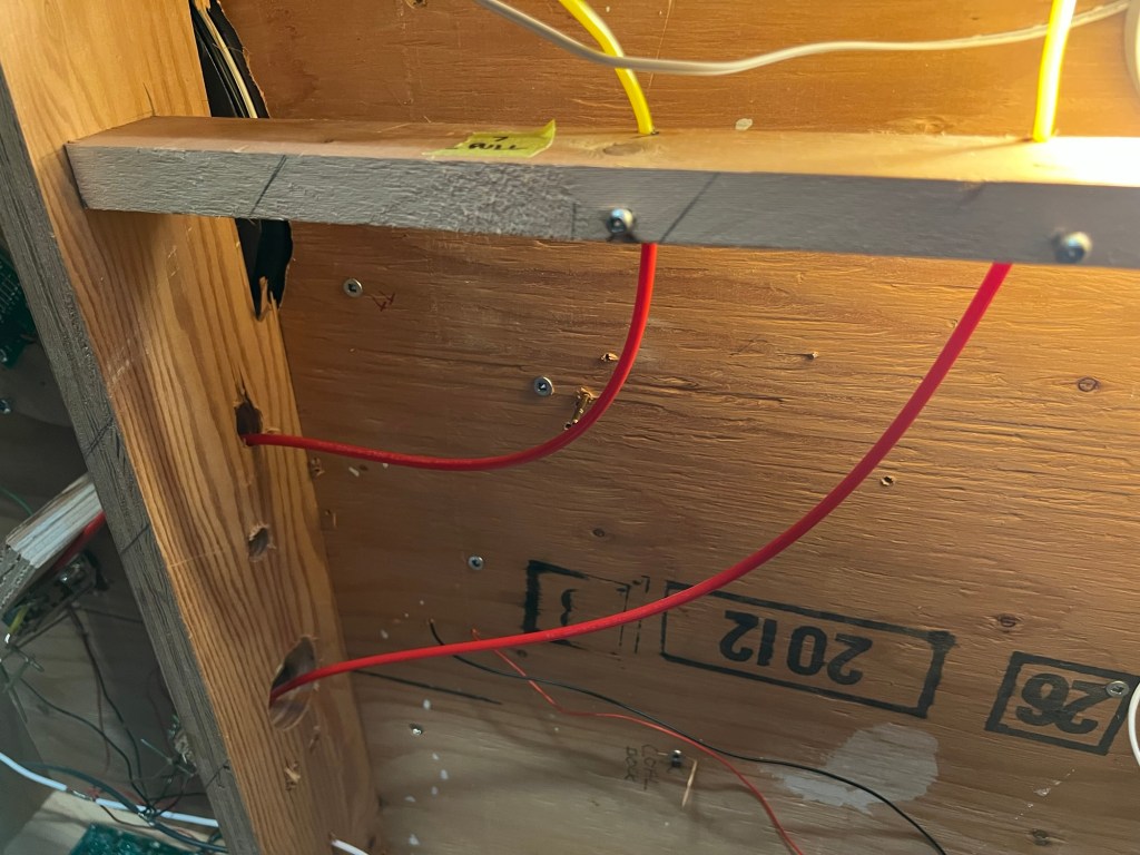 The reason there are no controls for either of the turnouts off the siding is two-fold. First of all, they’ve not been needed as there is no freight moving on the layout yet. Secondly, I’ve never been happy with the operation of the control rods. When they were installed, I routed them through a wicked S-bend to get to the fascia at a perpendicular. The friction through this bend made the turnouts very difficult to operate.
