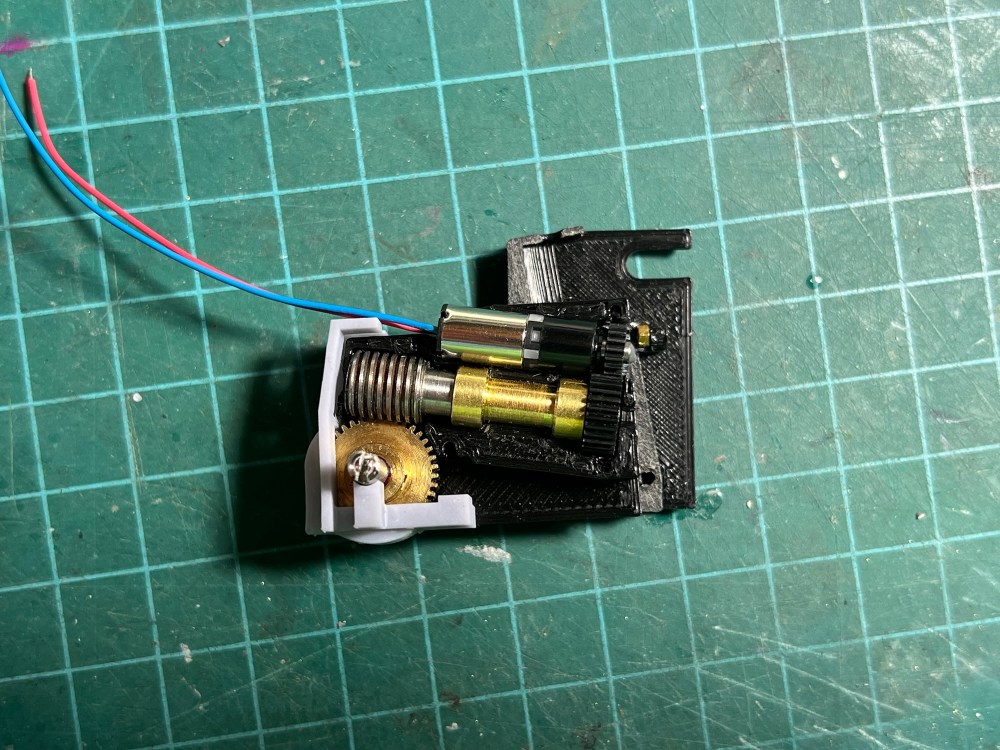 I’ve not applied power yet because the epoxy holding the spur gear to the motor shaft will be curing until tomorrow. However, this photo provides an idea of how it all fits together.