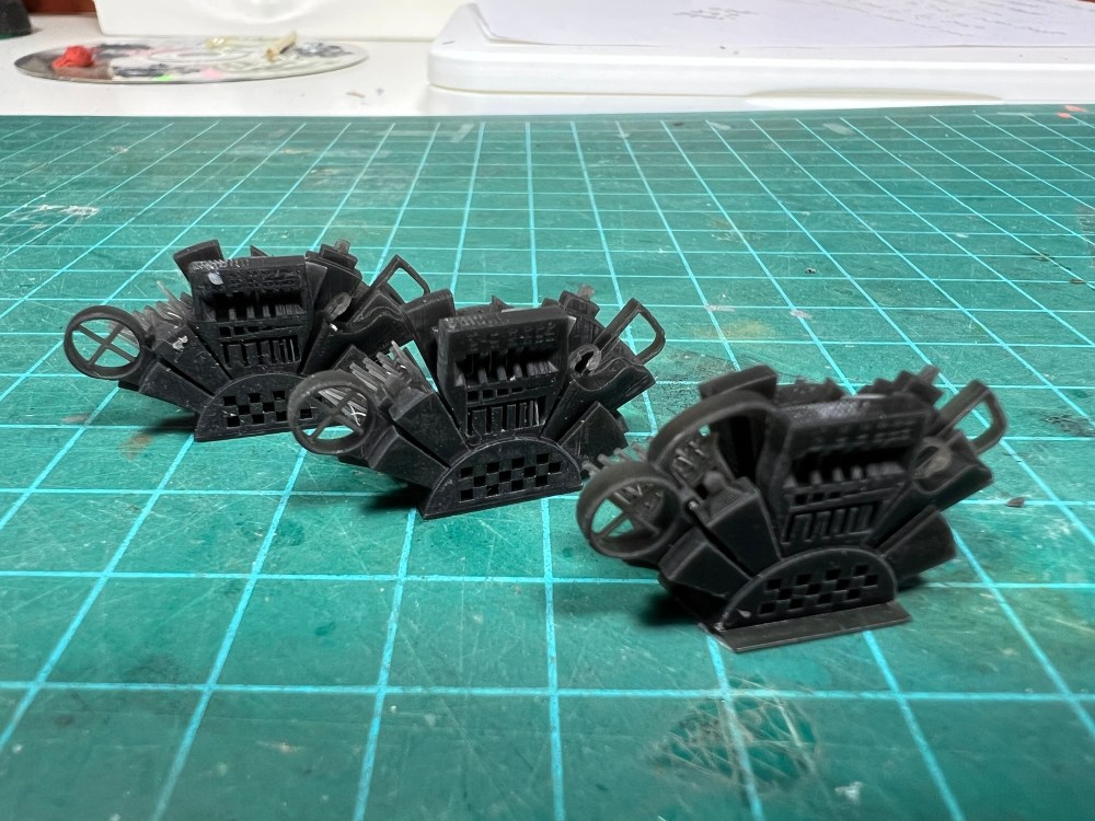 Then some black resin arrived, which I think is going to be better for the trucks, and so I printed an Amerablabs Town with each iteration of the truck thereafter. For this resin, the recommendation from Elegoo underexposed ever so slightly, and I couldn’t get the “antenna” to print at all until I slowed the lift rate. Humidity, warmth and FEP sheet age all probably play a role here too.